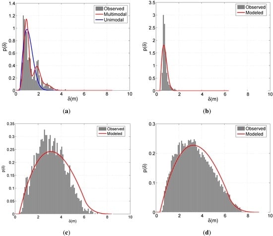 This distribution is independent of the choice of reference frame. Of course, in the presence of a strong pedestrian flow along a certain direction, the distributions of δx and δy have different representations according to different choices of reference frame. This is due to the fact that α is determined by the major flow direction in such environments. In the presence of a major flow direction α is distributed in a non-uniform manner, which affects δx and δy. However, the distribution of δ given by Equation (3) is invariant to the orientation α. Thus, the distribution of δ is still given by Equation (3). This result obviously holds in the absence of any prominent direction such that α is a uniformly distributed circular random variable.