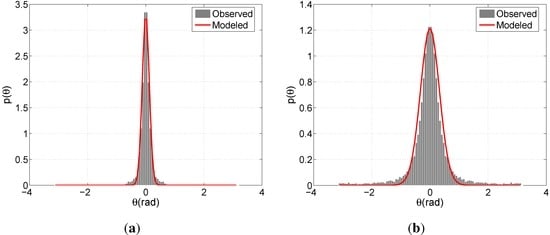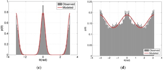 Hence, the principles of directional statistics are invoked and the behavior of θ is modeled as a von Mises distribution [51], which is the circular analogue of the Gaussian distribution. The following is the explicit form of the von Mises distribution,