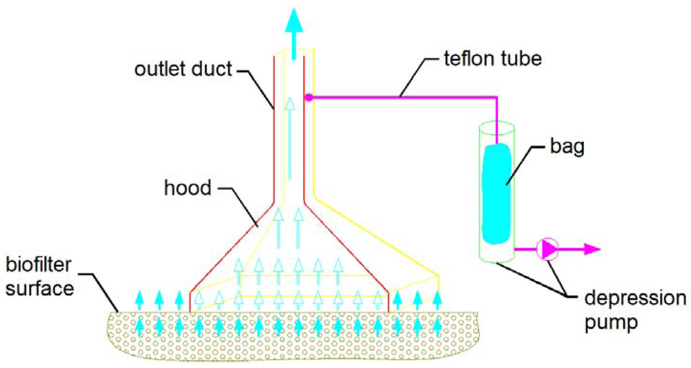 To obtain representative data of the entire source, samples must be collected from different points which should be uniformly distributed over the emitting surface. Generally speaking, the surface portion sampled should be about 1% of the total [52]. For example, if using a static hood with a base area of 1 m2 on a biofilter of 500 m2, five samples should be taken from five different points uniformly distributed over the whole surface.