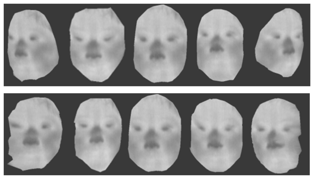 Projected 2D near-IR face images from 3D multi-spectrum data after ICP normalization (2D-NIR + 3D + ICP)