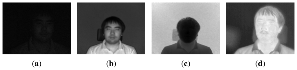 The wavelength range of near-infrared (IR) and thermal-IR sensors are from 0.7 μm to 1.0 μm and from 9 μm to 14 μm, respectively. Although these wavelengths are not perceived by the human visual system, IR images contain distinctive features, such as thermal radiation emitted by objects. Furthermore, compared to visible sensor images, infrared images are more invariant to visible illumination changes [9,10]. However, neither near-IR nor thermal-IR images include color (RGB) information. In addition, thermal-IR images do not contain texture information and can be affected by ambient temperature.