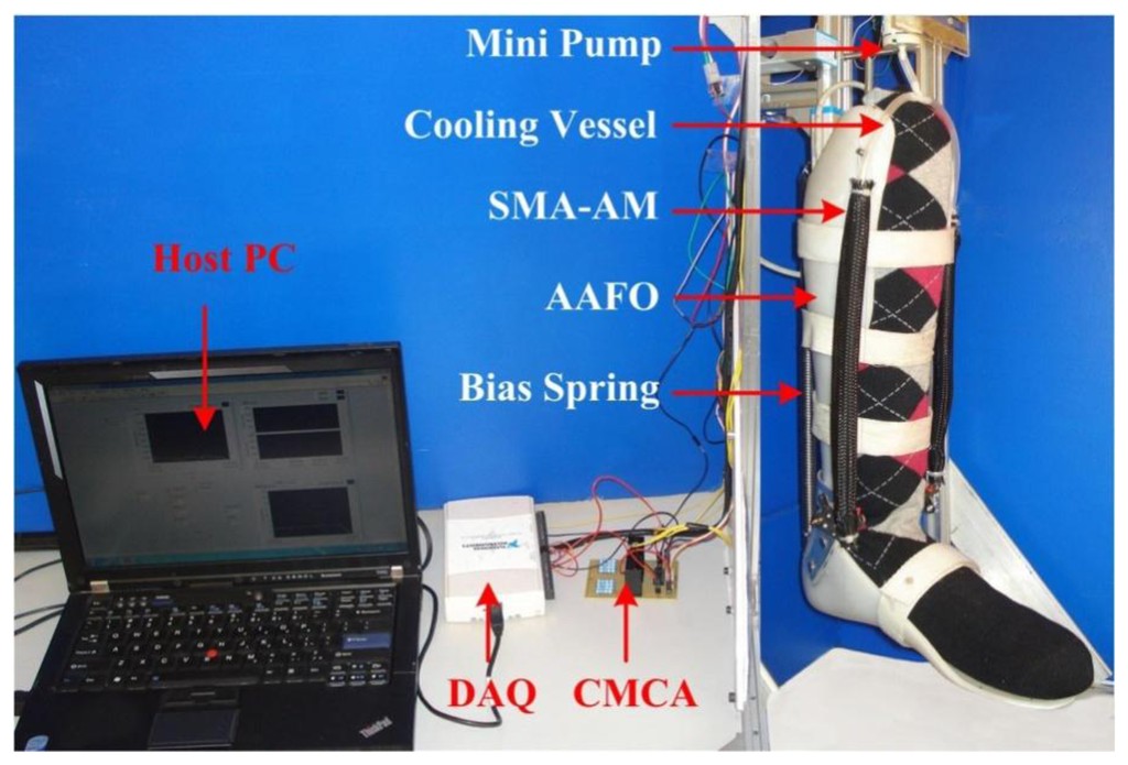 - Esfahani, E.T.; Elahinia, M.H. Stable walking pattern for an SMA-actuated biped. IEEE ASME Trans. Mech. 2007, 12, 534–541. [Google Scholar]
