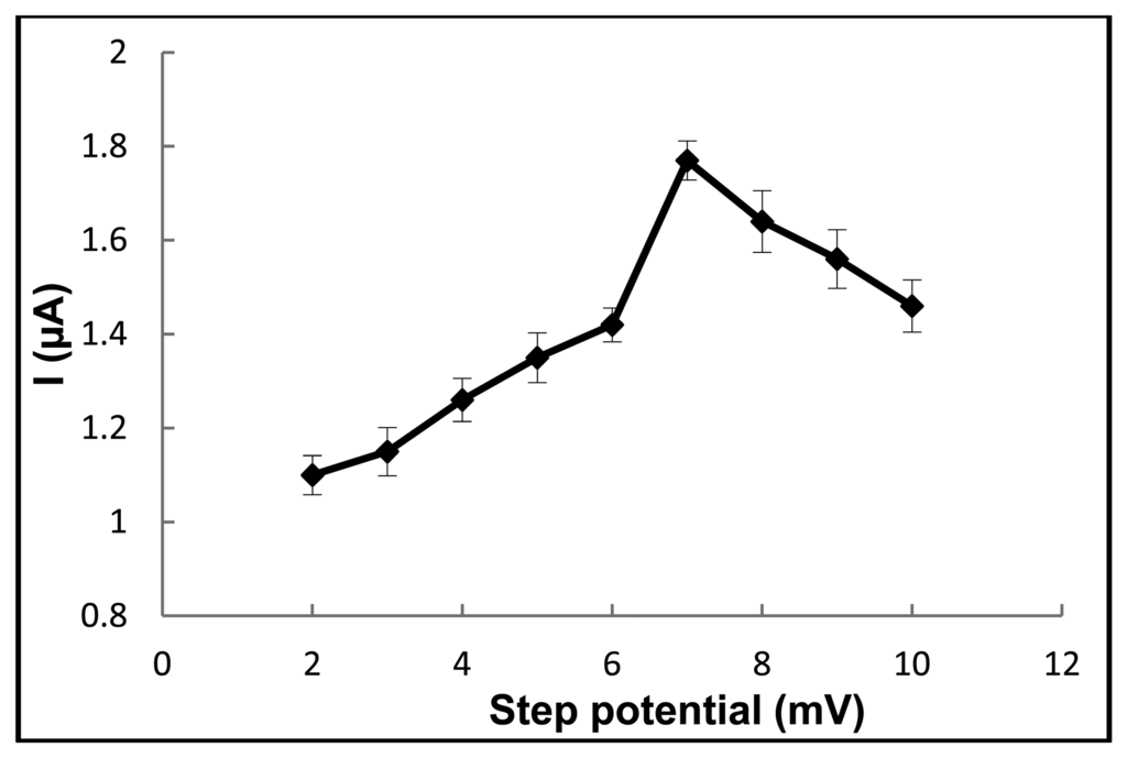 3.1.4. Effect of Differential Pulse Voltammetric Parameters