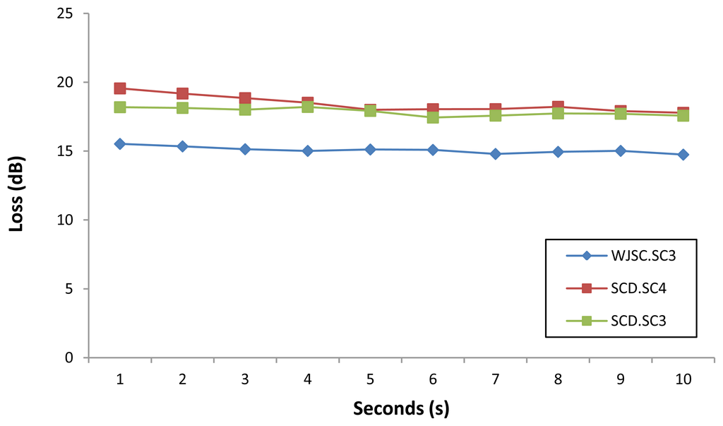 Figure 6 shows the loss of power measured over a period of 10 seconds for selected samples of the WJSC.SC3 cell line. It can be seen that the sensor is very stable, with only minor fluctuations in the loss readings obtained from the sensor. A similar performance is also observed for loss measurements taken from selected samples of the three different cell lines, as shown in Figure 7.
