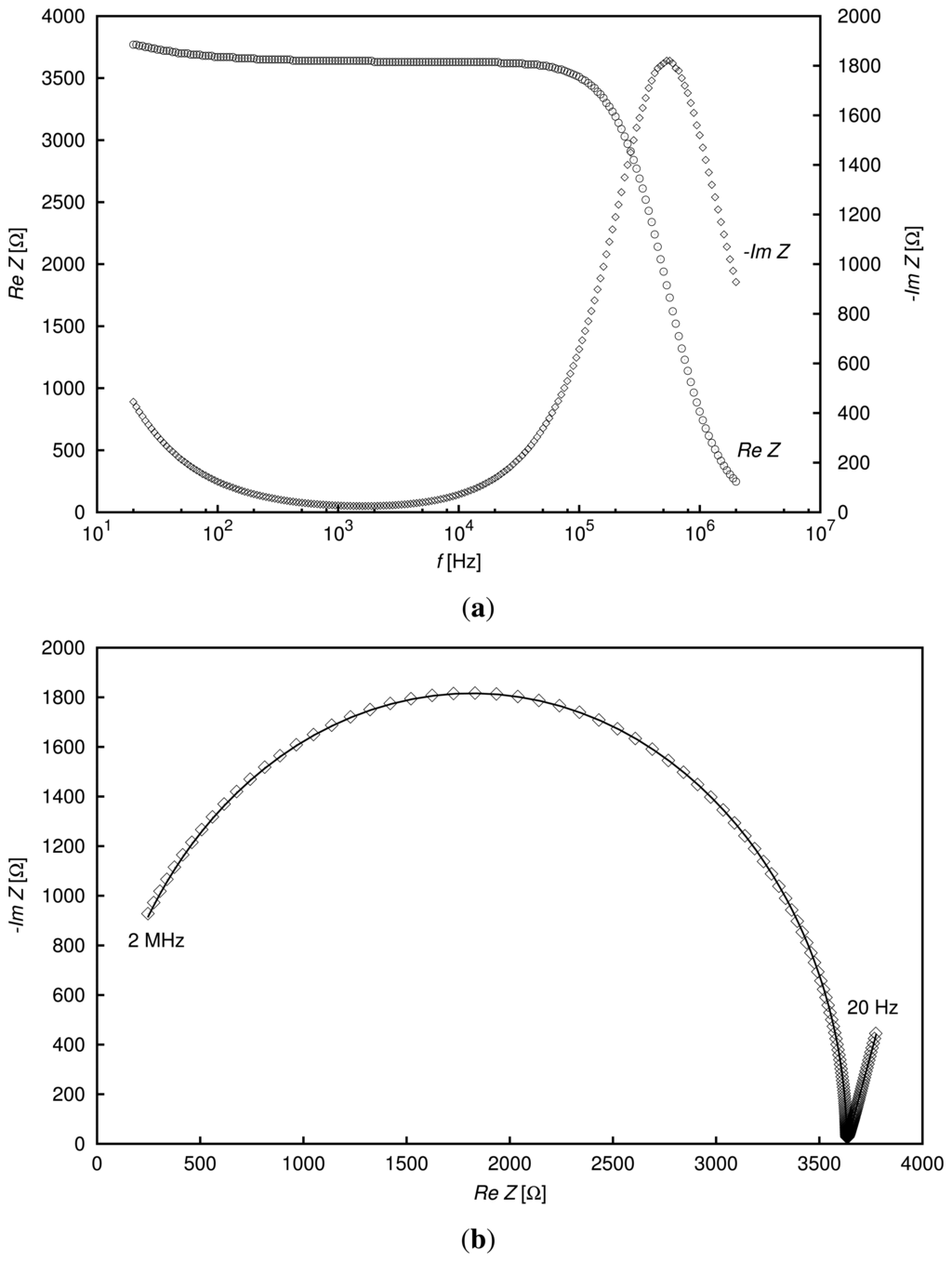 One of the possible methods for analyzing the electrical properties of materials is impedance spectroscopy (IS), which measures the frequency spectrum of the impedance of the sample [5]. It is commonly used in the fields of electrochemistry and materials science. IS measurements provide a tool for the characterization of the structure of electrode surfaces [6], investigation of electrochemical reaction mechanisms [7], as well as various processes, like adsorption/desorption [8] or diffusion [9], taking place in the system. They are also employed in controlling the quality of metal surfaces, batteries and fuel cells [10,11]. Due to the variety and amount of information that IS may potentially provide, it is also used in biophysical [12], pharmacological [13,14] and geophysical [15] analyses.
