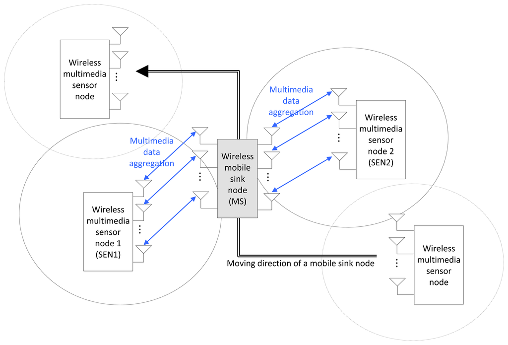 During the last several decades, wireless sensor networks (WSNs) have been widely used in various areas, including environmental monitoring, home automation, healthcare, agriculture, unmanned battle fields, public space surveillance and intelligent traffic systems (ITSs) [1]. A WSN is usually deployed with static sensor nodes to perform monitoring missions in the region of interest. However, due to dynamic changes in events and hostile environment, a purely static WSN could face severe problems, such as scalability, coverage and unfair battery consumption. To overcome these problems, mobile wireless sensor networks (mobile WSNs) have been proposed [2]. Mobile WSNs are a particular class of WSN in which mobile sink or sensor nodes play a key role in the execution of the applications. Although it has been shown that mobile sensor nodes alleviate several issues related to fixed sensor network coverage and scalability, many technical issues remain [3–8]. One of the most significant challenges for mobile WSNs is to form a reliable wireless channel among a mobile sink node and sensor nodes. Moreover, some mobile WSN applications, such as ITS, unmanned battle fields and public space surveillance, exploit rich sensing information, including video, audio or high definition images. To gather and use rich sensing information, wireless multimedia sensor networks (WMSNs) have been introduced and investigated to determine if sensor nodes are capable of producing different media streams [9,10]. Multimedia information, such as video streams or high definition images, requires much higher data rates than those supported by current WSNs. It is essential to provide fast wireless links among a sink node and sensor nodes for efficient and fast data aggregation in WMSNs. Thus, a reliable and fast transmission technology for mobile sink and sensor nodes is one of the key technical issues to be tackled for mobile WMSNs.