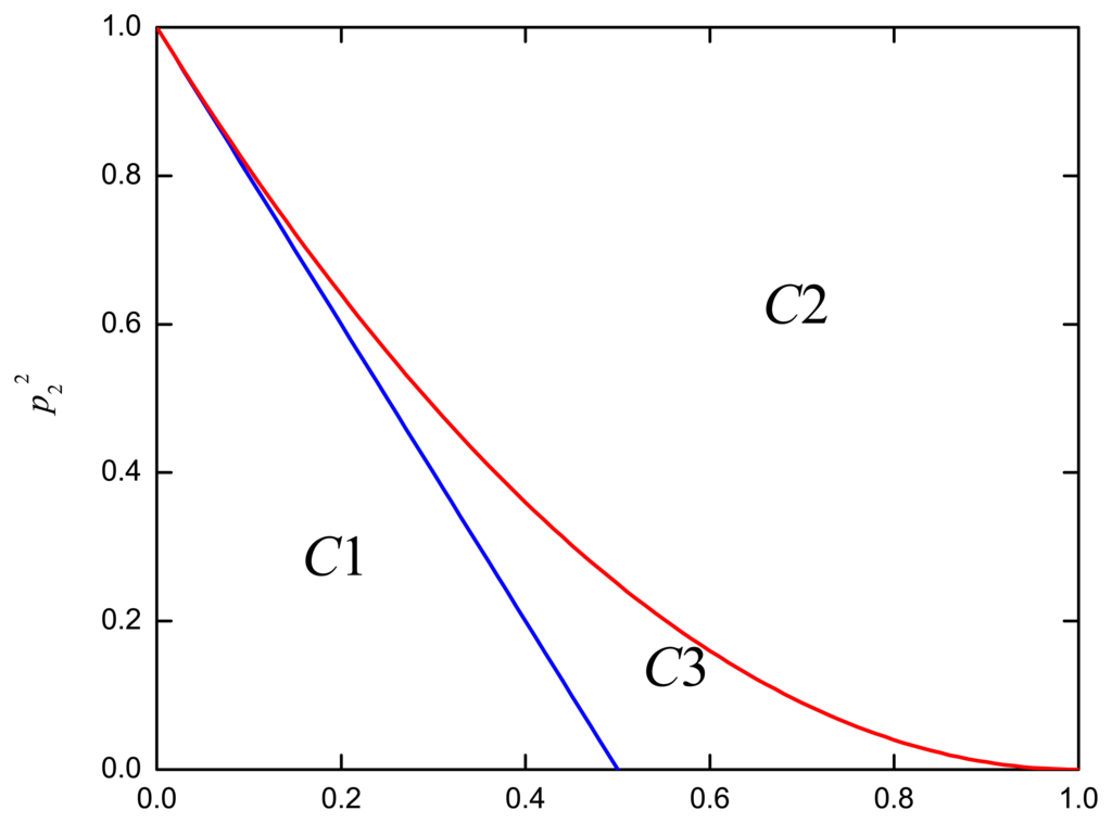 The regions for the three cases are depicted in Figure 6. For C1, SN SM is always better than MN SM, irrespective of the SNR. This can be intuitively expected, since α(p2, η) ≤ 0 corresponds to a smaller p2 and η, where MN processing cannot obtain its advantage over SN MIMO. On the other hand, MN SM is always better than SN SM for C2, which corresponds to a major portion in Figure 6. Thirdly, a crossing between SN SM and MN SM occurs in C3, where SN SM outperforms MN SM when the SNR is less than the crossing point value, γMN-SN (= 2α (p2, η)/(η4 − α(p2, η))).