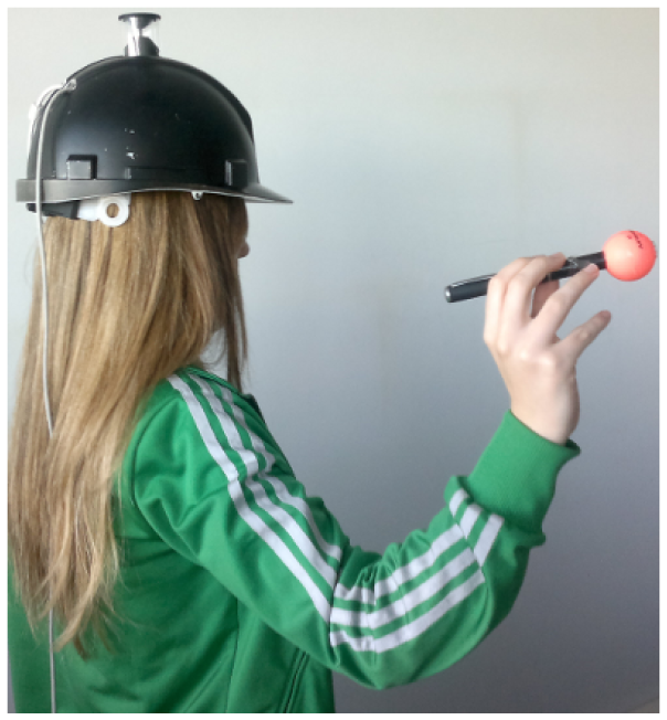 Figure 10. Wearable flexible structured light system with light emitter in hand.