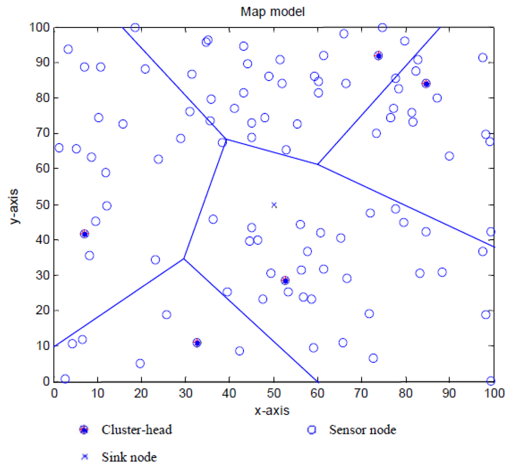 A non-uniform distributed WSN is shown in Figure 2, where a static sink locates at the center of the network. In this paper, we consider a network with N sensors randomly dispersed in a rectangular network.