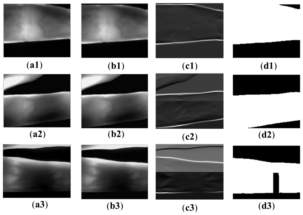 It can be ascertained that the proposed operator can correctly binarize the finger region whose edges are clear and complete in the filtered image. Inspired by this, an ideal method to segment the images with false background in the coarse binarization results (Figure 5a3,a4) is to pad the boundary for them. This method has the assumption that the image boundaries can be directly considered as the finger edges, because only a small finger region disappears in these images.