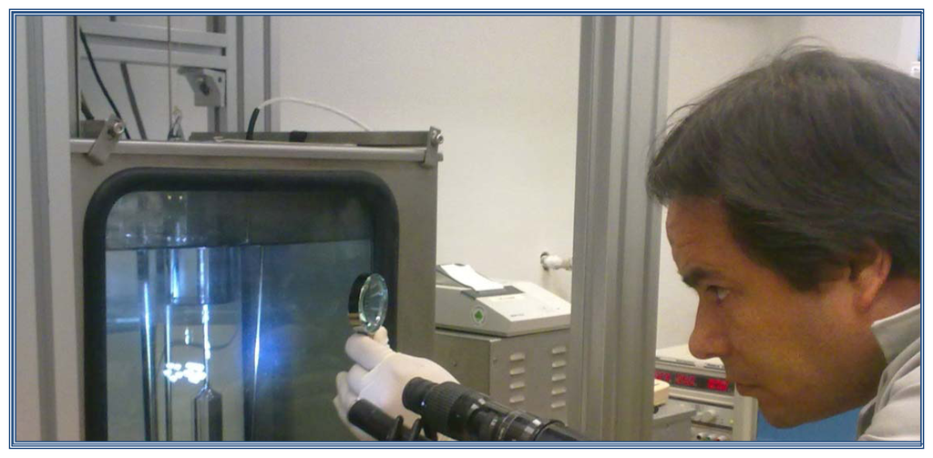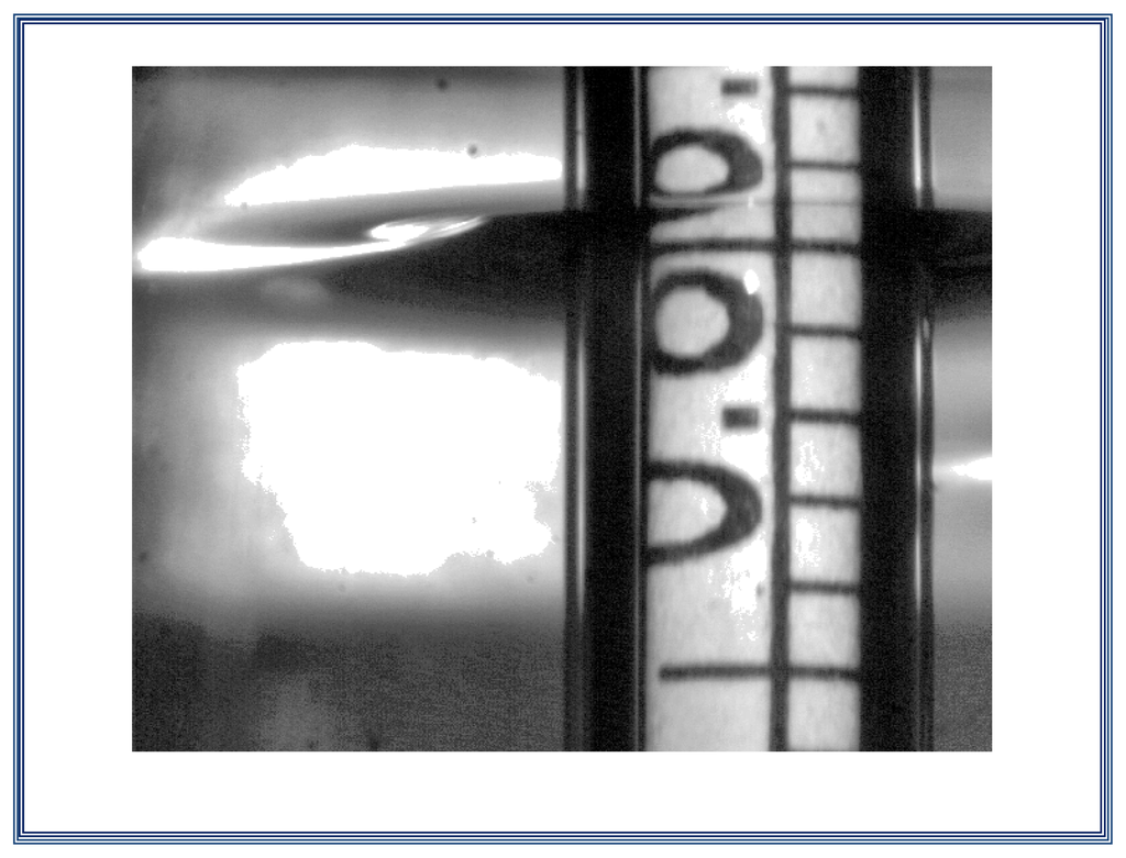 Traditional calibration. The first calibration was done with the old method, i.e., using a magnifying glass and left to the judgment of metrologist to mark the location of the scale to calibrate the reference surface of the liquid. This procedure is carried out as can be observed on Figure 9.