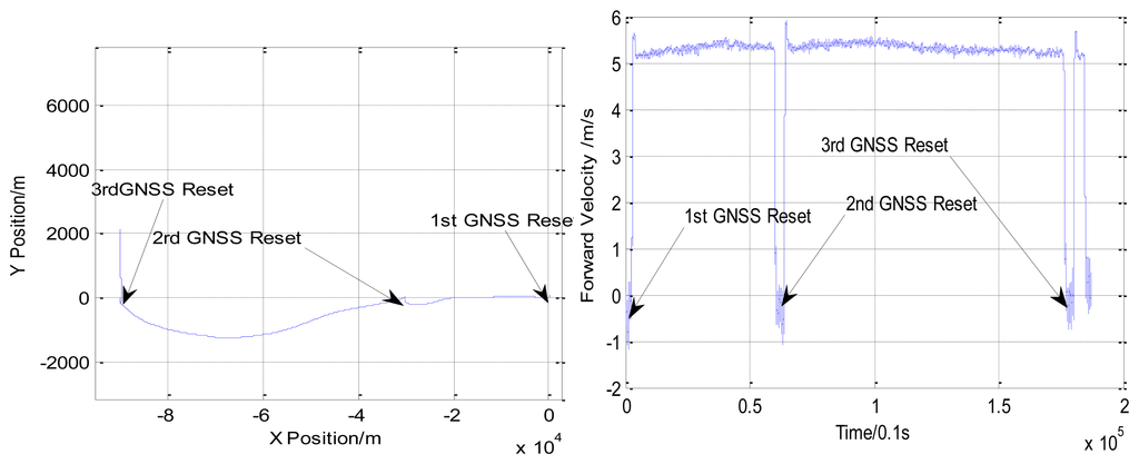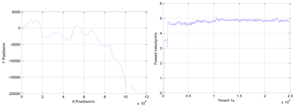 A near straight trajectory which is about 8 km was chosen for parameter calibration. The trajectory and forward velocity of the vessel in the river trial are shown in Figure 4.