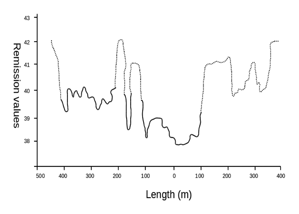 The brightest colors (vegetation) cause higher reflection values. However, some soil components could have high reflection values, as well, which make the process of vegetation extraction much more challenging than the ideal case. One of the reasons can be the breeze while measuring, as it affects LIDAR measurements, because of the change that the crop and weed leaves pose. This implies that the laser beam, instead of aiming at the leaves, is hitting the soil surface. As a result, the measurement is wrong. The height of 60 cm over the soil was chosen in order to minimize the error in the measurement (minimum object size: 20 mm), e.g., the laser beam spot can hit half leaves and the other half, soil. Consequently, the signal received by the LIDAR is the average reflection value of the soil and the plant. Nevertheless, this situation can be overcome, since some LIDAR sensors are able to provide different echoes for partially occluded laser beams, so that the data collection system would know if the beam partially hit a leaf and continued to another leaf or to the ground. In this way, the reflection value could be corrected or removed from the analysis. In addition, when the laser beam is perpendicularly incident on a surface, the energy is optimal. In some cases, the reflection values from vegetation and soil were really close. Therefore, reflection data together with LIDAR height measurements were used to robustly distinguish between soil and vegetation.