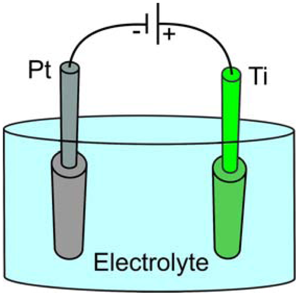 Electrochemical anodization of titanium is a relatively simple and efficient process to fabricate well-aligned and highly ordered TiO2 tubular structures. Anodization is carried out in a two-electrode system and the process is controlled by variation of the anodization parameters (Figure 1).