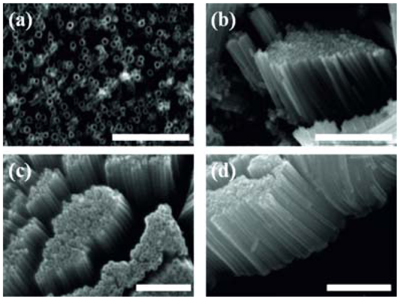 - Gong, D.; Grimes, C.A.; Varghese, O.K.; Hu, W.C.; Singh, R.S.; Chen, Z.; Dickey, E.C. Titanium oxide nanotube arrays prepared by anodic oxidation. J. Mater. Res. 2001, 16, 3331–3334. [Google Scholar]