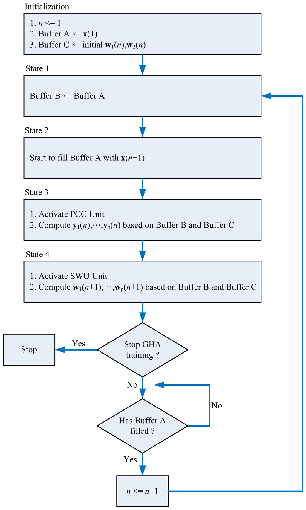 The architecture of the GHA unit is an extension of the architecture presented in [19]. The GHA unit consists of three functional units: the memory unit, the synaptic weight updating (SWU) unit and the principal components computing (PCC) unit.