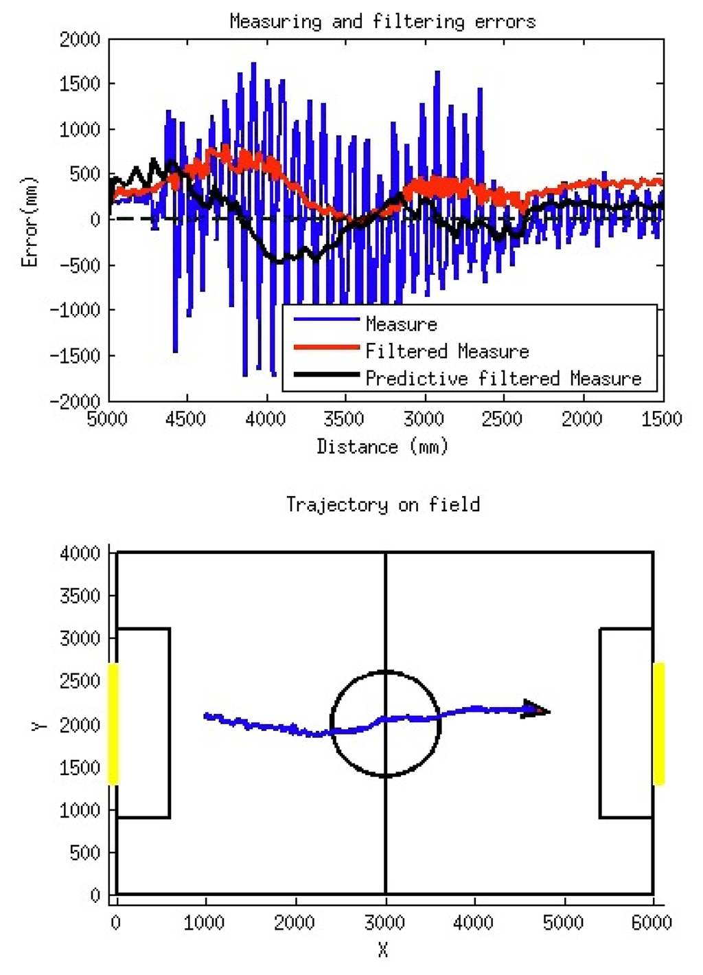 The performance of the proposed filter during ‘kidnapped robot’ situations was tested—and proved to be faster than other methods. The situation was solved in only 30 s thanks to a dynamic re-sampling step that improves the estimation when reliability in the estimation decreases. Therefore, this system has proven to be an essential element for improving the game and providing a real challenge for opposing teams.