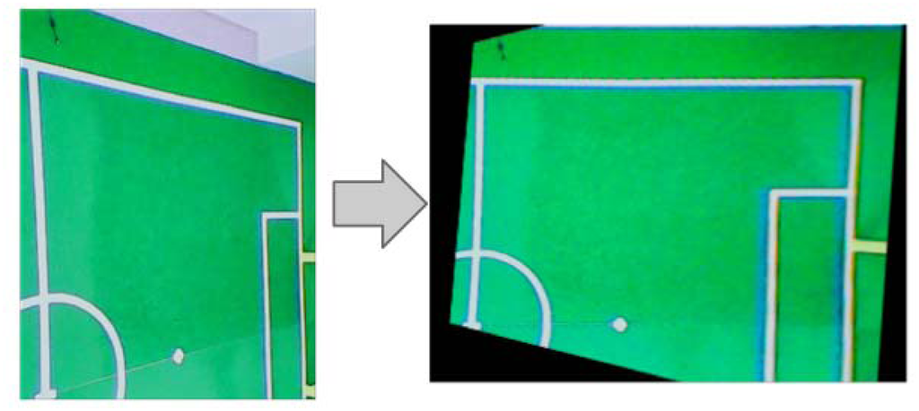 Obviously, this camera arrangement will produce perspective distortion due of camera positions, but a homography procedure shown in Figure 18 is performed to obtain a zenithal perspective.