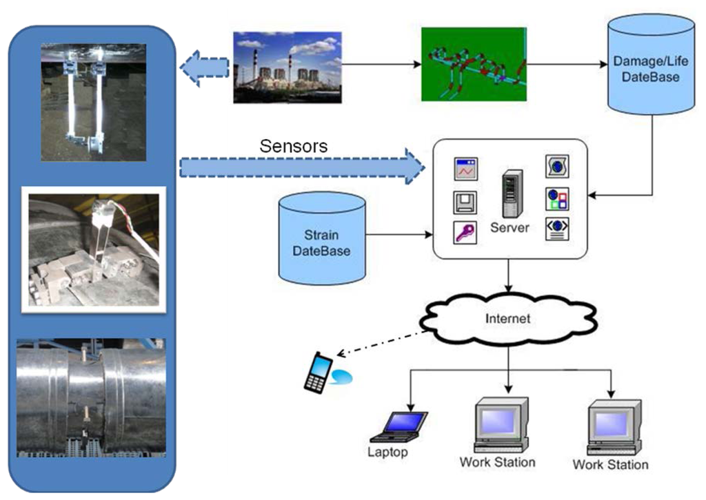 This system is designed to predict the life of high temperature piping according to on-line strain monitoring []. The configuration of its several modules is shown in Figure 3.