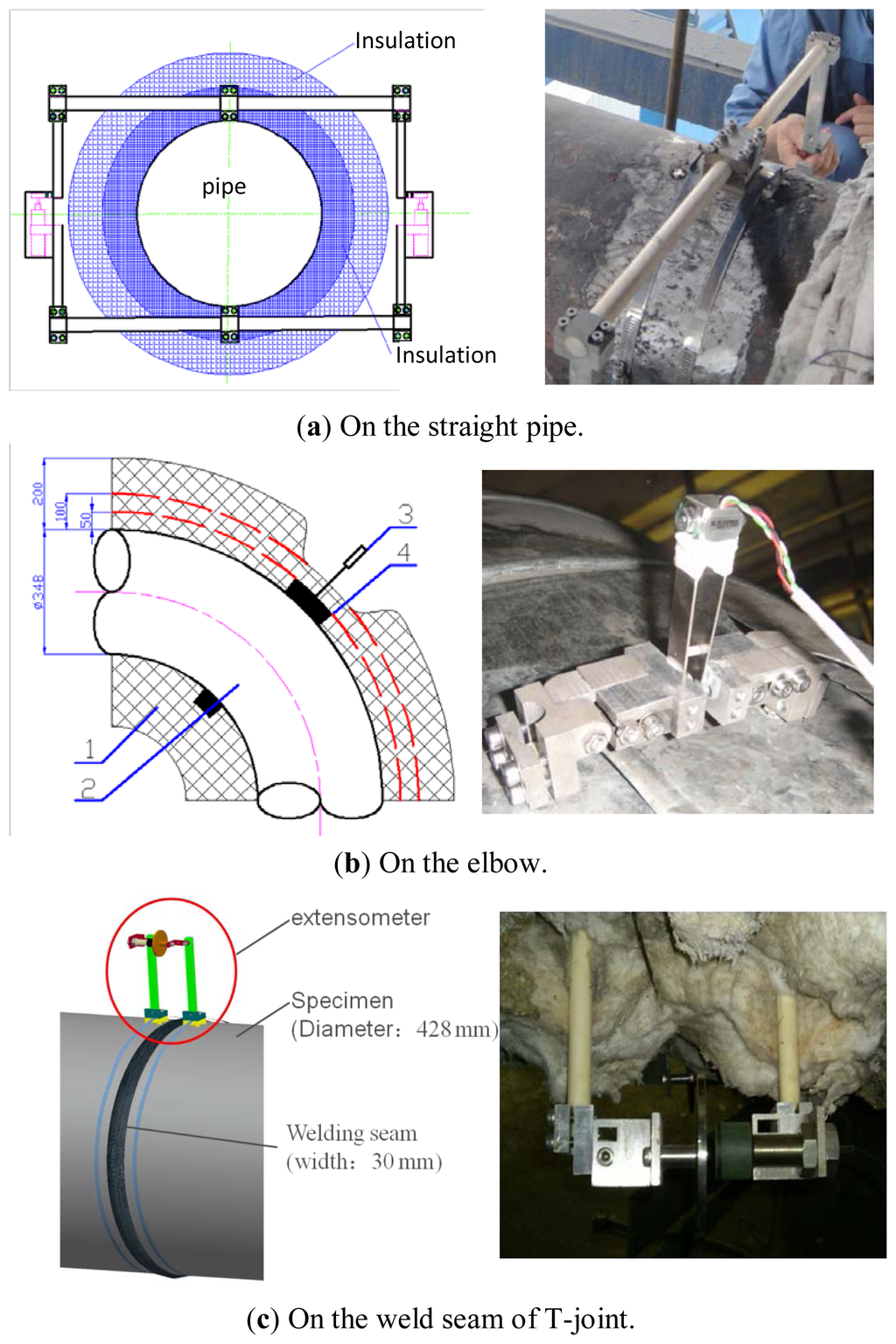 To monitor high temperature creep deformation of the pipe in the plant, extensometers can solve the problems of harsh working environment and extremely small deformation of components. However, there are some other difficulties. During the on-site tests, it was found that the fixation method is a factor that could not to be ignored.