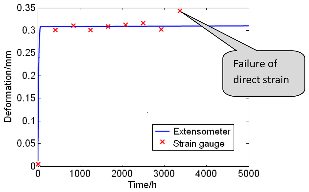 3.3.1. Longer Working Time of Extensometers than Direct Strain Gauges
