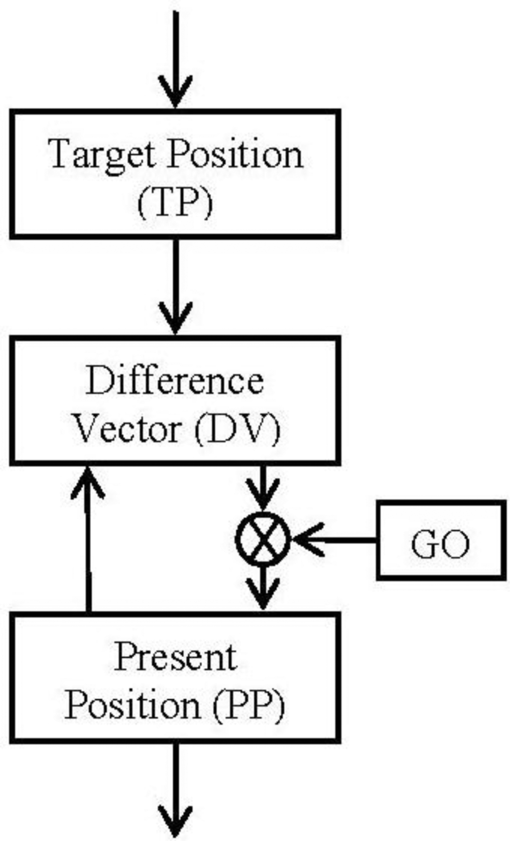 The block diagram (Figure 2) and the equations are presented in this subsection in their simplest form for the algorithm. The algorithm will integrate the difference vector at each time in order to update the present position (Equation (2)). But it will not be updated until the GO signal has a non-null value (Equation (2)). Meanwhile (GO signal has a null value) the difference vector is pre-computed in order to be ready for the shoot in the control signal. This time is known as the “motor priming”. If at any time while the movement is being done the GO signal goes zero, the movement will be frozen in that position.