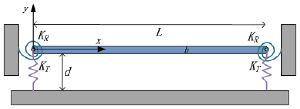 In this section, we formulate the problem for the forced vibration of a microbeam of nonideal supports. Rotational and transversal springs are added to the boundaries of the beam to model the compliant supports shown schematically in Figure 2. Assuming Euler-Bernoulli beam model with immovable end conditions causing nonlinear stretching effects, the nonlinear equation of motion governing the transverse deflection of the beam is expressed as: