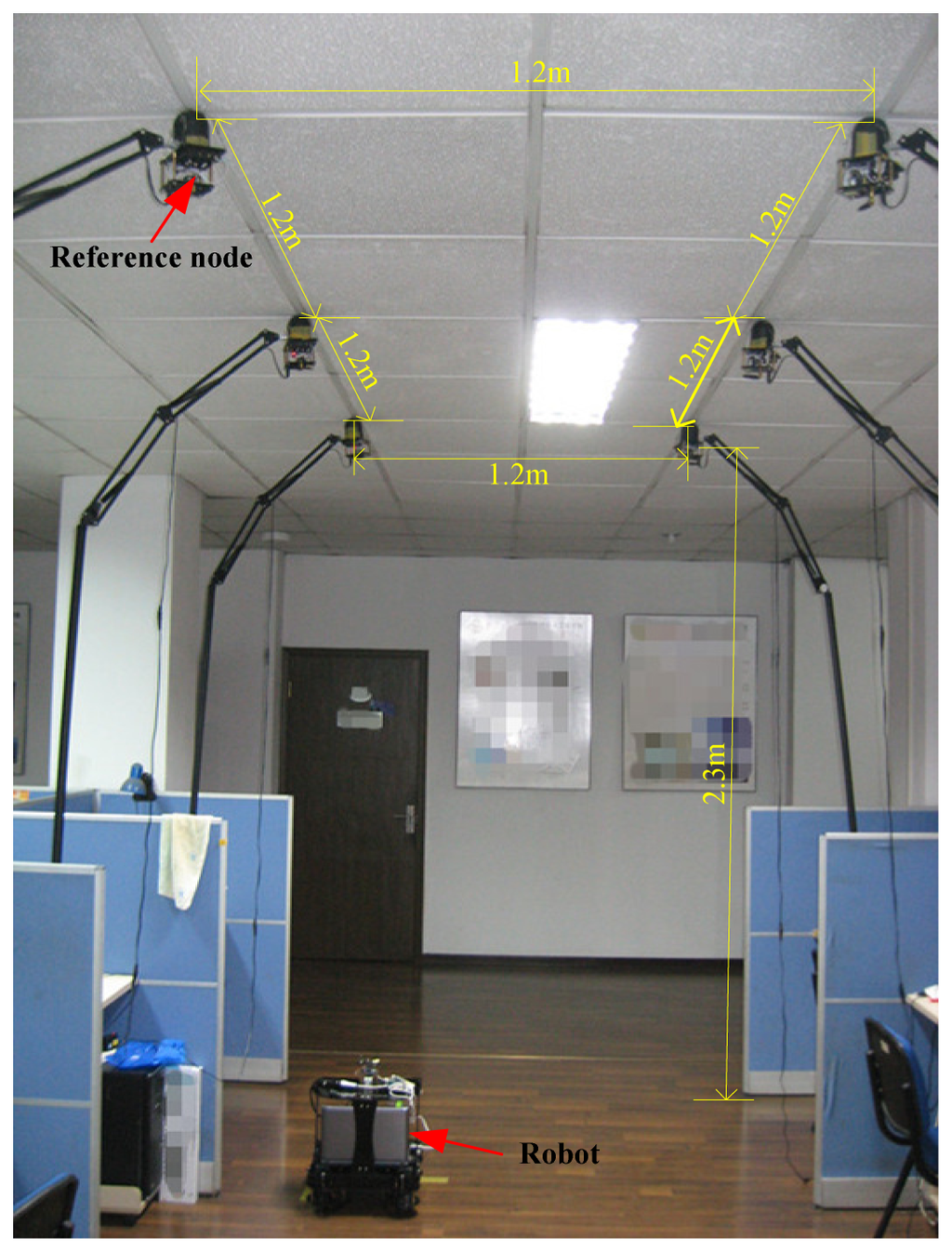Autonomous mobile robots have increasingly been used in a wide range of applications [1]. One key issue for mobile robots is the ability to obtain their navigation information (such as position, velocity and so on). In order to obtain accurate navigation information indoors, a number of methods for localization with various sensors and different degrees of precision were proposed over the past few decades [1–3].