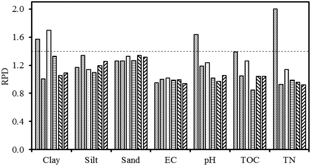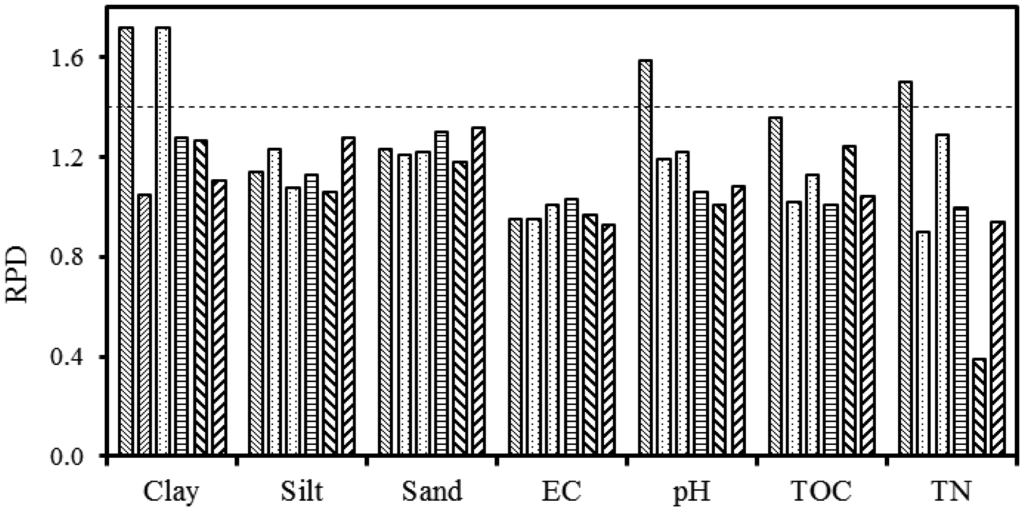3.11. Prediction of Soil Properties Based on RPD Statistic