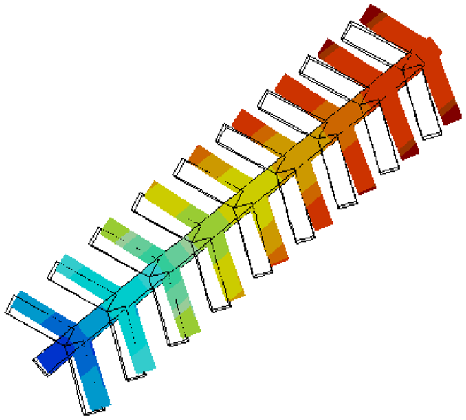 Based on this analysis, a width of 25 μm was selected for use in the design. This sizing ensures that the forces applied to the fingers are coupled to the end of the comb, and thus can actuate the disk effectively, as shown in Figure 9. Also, it acts as a good compromise between force coupling and device area.