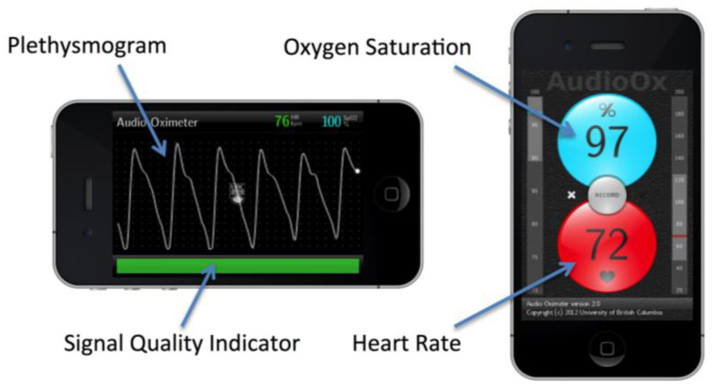 - Petersen, C.L.; Gan, H.; Gorges, M.; Ansermino, J.M.; Dumont, G.A. Systematic Evaluation of Mobile Phone Pulse Oximetry Performance. Proceedings of the Annual Meeting of the American Society of Anesthesiologists, San Francisco, CA, USA, 12–16 October 2013.