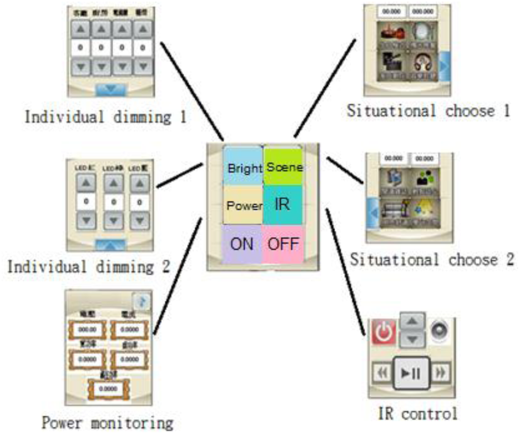 The touch pad is employed as a human computer interface on a touch screen for lighting mode selection, light tuning, and the consumer electronics control, and signal reading from a multimeter, as illustrated in Figure 6.