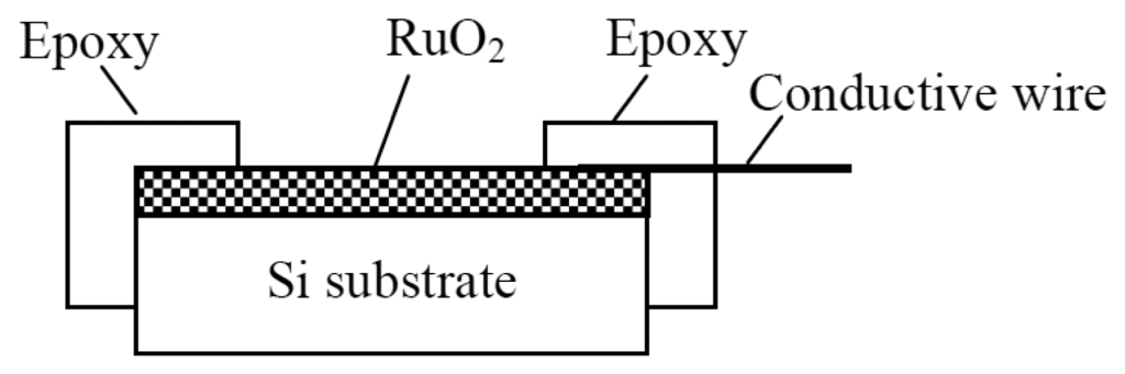Silicon wafer was used as the substrate of the ruthenium dioxide (RuO2) sensing membrane of the sensor device. The silicon substrate was (100)-oriented, p-type, resistivity 15∼25 Ω-cm, and supported by the National Nano Device Laboratories (NDL). The RuO2 sensing membranes were prepared using a sputtering process. The RuO2 thin films were_deposited on the silicon substrate maintained at 25 °C by radio frequency sputtering with 2-inch-diameter, ¼ in.-thickness, and 99.99% purity ruthenium target. Ethanol and D.I. water were used for cleaning the silicon substrate and were obtained from Katayama (Osaka, Japan) and our laboratory, respectively.