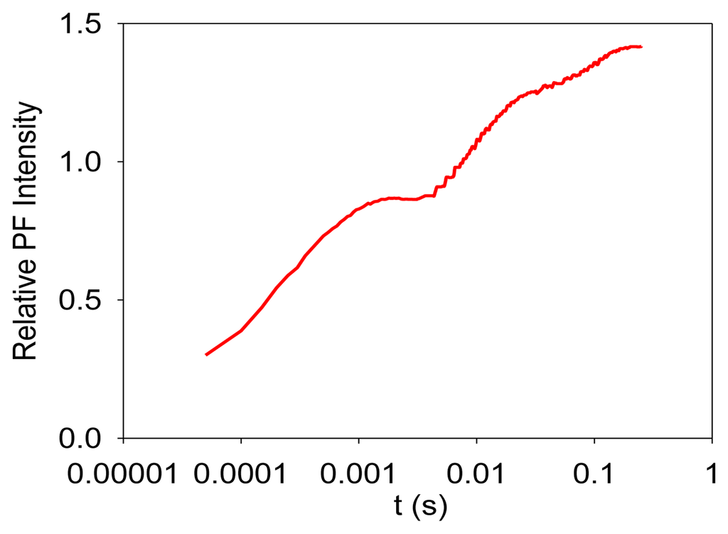 It is worth mentioning that PF is measured when excitation light is turned on, and it shows a trend of increasing with recording time before light adaptation. DF is measured when the excitation light is turned off, and it thus shows a trend of decreasing with recording time. DF is not measurable when the excitation light is turned on because PF and DF have the same wavelength, but PF is much stronger than DF, and the excitation light may damage the high-sensitive DF measurement setup.