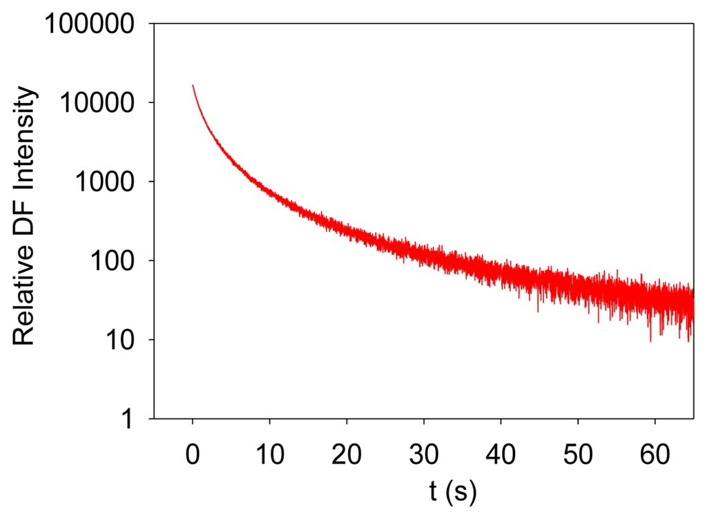 Photosynthesis is the only known biological process that can harvest sun light energy [1]. Life on Earth ultimately relies on the harvested energy to drive all kinds of activities. Oil, gas, and coal are all products from photosynthesis, which are essential to modern industry [2]. The oxygen produced from photosynthesis allows aerobic life to exist [3,4]. Photosynthesis-related research is thus very important. Photosynthesis starts from light-induced separation of charge pairs and transport of electrons by various electron carriers [1,5]. When a photo-excited electron of a chlorophyll molecule in photosystem II (PSII) returns to the ground state, a new photon is regenerated, which is commonly referred to as fluorescence or prompt fluorescence (PF). The PF usually has a lifetime in the order of pico- or nanoseconds. The excited electron can also be transferred forward and used for photochemical reactions. Because chemical reactions are usually reversible, this electron can be transferred back, resulting in chlorophyll molecules (e.g., P680 or PSII antenna chlorophyll molecules) in the excited state, and capable of emitting chlorophyll fluorescence. After the excitation light is turned off, there are excited electrons along the electron transport chain. It takes time for these electrons to transfer back to generate chlorophyll fluorescence. This type of fluorescence thus has a much longer lifetime (minutes or even hours) and is commonly called delayed fluorescence (DF, also known as delayed light, delayed luminescence or DL) [6–10]. Examples of measured PF and DF from PSII are shown in Figures 1 and 2, respectively.