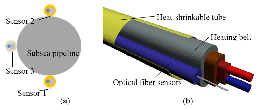 In recent years, a number of methods have been proposed to monitor scour of subsea pipelines. In 2003, Jin et al. [] introduced a basic real-time monitoring system for long distance submarine pipelines. Distributed optical fiber sensors were deployed to monitor the strain along the pipeline. The introduced system functions as an auto-alarm and a damage locator. Likewise, Jin and Shao introduced a practical algorithm for data analysis and demonstrated a practical application of the system on the submarine pipeline in Bohai Sea, China []. In 2011, Bao and Hao developed an integrated autoregressive moving average (ARMA) model algorithm for the structural health monitoring (SHM) of offshore pipelines []. Both numerical simulations and laboratory tests proved that the method is sensitive to pipeline damage. The methods mentioned above concentrate on indirectly measuring the free-spanning vibration. However, these kinds of methods are feasible only if the vortex-induced vibration is large enough to be detected and larger than the noise and measurement error. Furthermore, these scour monitoring systems are constrained by the construction limitations. During pipeline construction, the pipes are welded one by one on a ship before being placed on the sea bottom. Installing the distributed fiber optical strain sensors presents a great challenge for commercial practical application. Unlike the conventional scour monitoring methods, in this paper, we propose a scour monitoring system based on active thermometry. Active thermometry is an effective way to measure thermal parameters, namely thermal resistivity, thermal diffusivity, specific heat and soil water content [–]. Previous research shows that active thermometry, implemented with optical fiber temperature sensors, has enormous potential in the field structural health monitoring [,].
