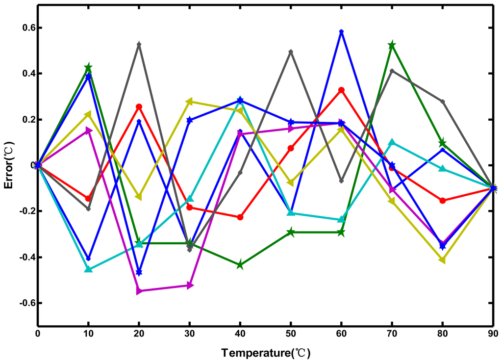 - Chen, P.; Chen, C.-C.; Peng, Y.-H.; Wang, K.-M.; Wang, Y.-S. A Time-Domain SAR Smart Temperature Sensor with Curvature Compensation and a 3σ Inaccuracy of 0.4 °C∼+0.6 °C over a 0 °C to 90 °C Range. IEEE J. Solid-State Circuits 2010, 45, 600–609. [Google Scholar]