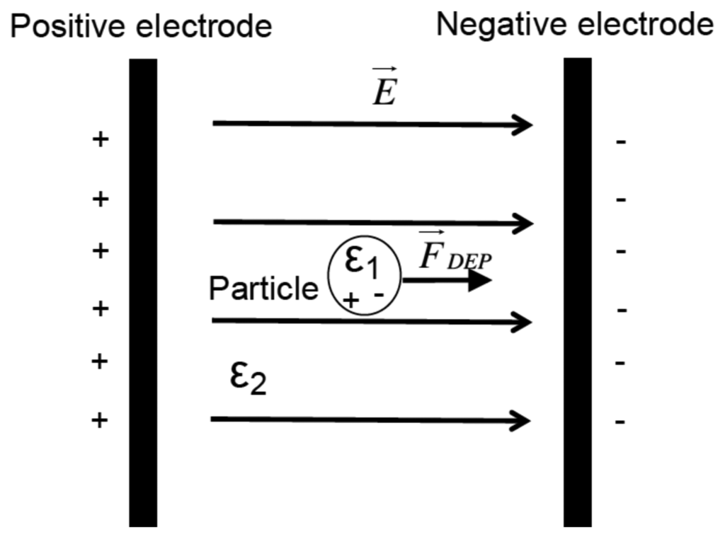 Dielectrophoresis is an electrical phenomenon that controls neutral-charge particle motion in a fluid induced by an inhomogeneous electrical field as shown in Figure 1.