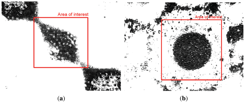 The objective of the actual modeling approach is to study the particle motion when an electrical field is applied within flowing liquid. Experimental results cannot provide enough data regarding particle motion except a limited 2D motion when the concentration of particles is low. In fact, when particle concentration is high with a cloudy dispersion, it is not possible to track particles even with an advanced algorithm because the software cannot identify the particles. Indeed, we tried to track particles with both QImaging software and an advanced developed algorithm on MATLAB, and both approaches failed to track particles as shown in Figure 17. Through MATLAB, the only useful information that can be acquired in this case is the particle number and concentration, i.e., 61 particles with a concentration of 43.95% and 768 particles with a concentration of 63.7% in the case of Figure 17(a,b), respectively, in the area of interest.