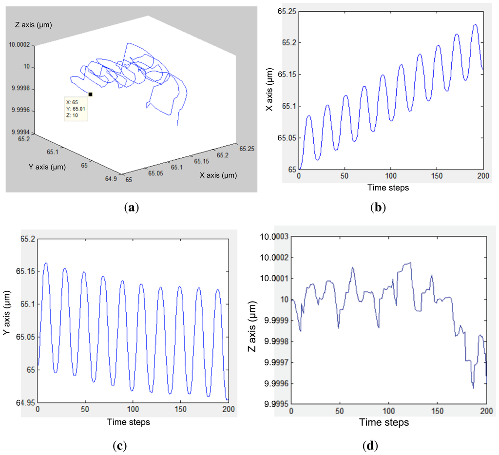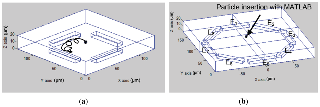 In the case of DEP manipulation, based on simulation results provided in Figures 9 and 10, particle separation can be processed in z-axis in addition to x and y axes, which helps to design 3D electrode structure. By using the proposed modeling method, it is easier to predict particle behavior before BioMEMS fabrication.