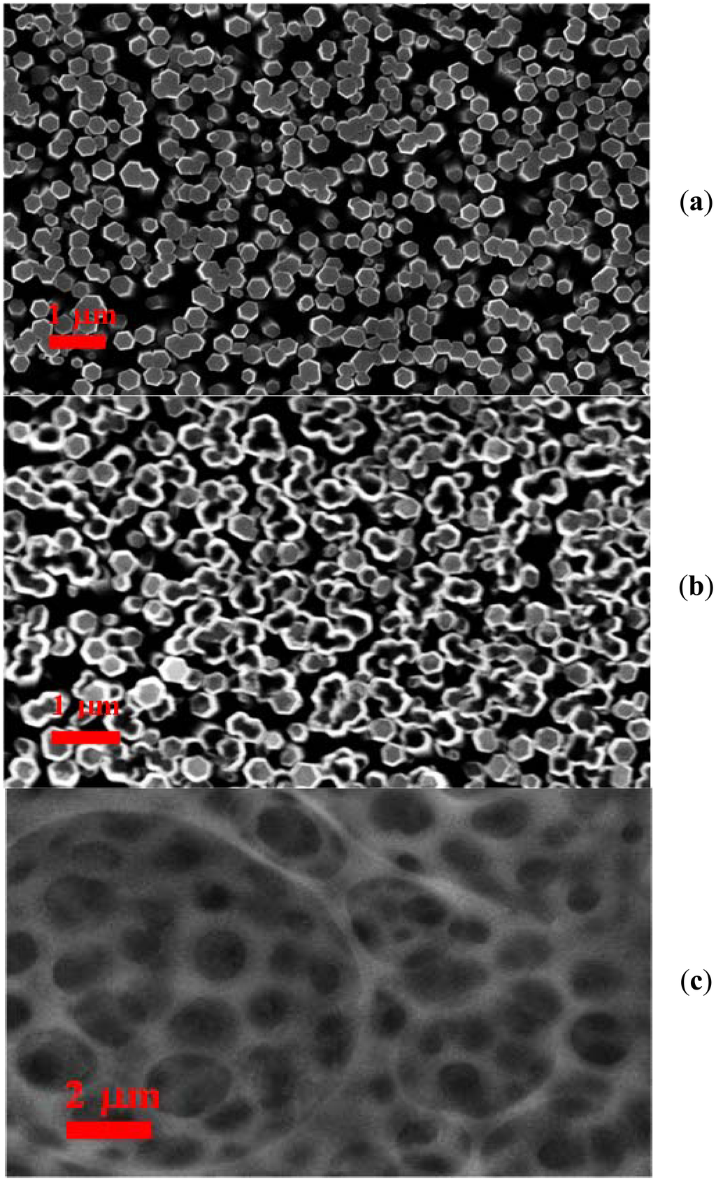 The process of fabrication of ZnO nanotubes on the gold coated glass substrates was as follows: The borosilicate glass substrates were affixed in the vacuum chamber of a Satis (CR 725) evaporator. Afterwards an adhesive layer of 30 nm thickness of titanium was deposited, and then 100 nm thickness layer of gold was evaporated. The fabrication of ZnO nanotubes was performed by a two steps chemical method. In the first step ZnO nanorods were prepared by the low temperature hydrothermal growth method [37]. The morphology of the as-grown ZnO nanorods was studied using the field emission scanning electron microscopy (FESEM) technique. It was observed that the prepared ZnO nanorods were highly aligned and dense, with a diameter of 100 nm to 200 nm, as shown in Figure 1(a). In the next step, the ZnO nanorods were chemically etched into ZnO nanotubes using a described method [39,40]. The grown ZnO nanorods were fixed in a Teflon sample holder and kept in 3.5 to 5.5 M solution of potassium chloride (KCl). The conversion of ZnO nanorods into nanotubes is dependent on different reaction parameters like the concentration of potassium chloride, temperature, and time. The experiment was repeated several times in order to obtain the desired ZnO nanotubes with high etching throughout the substrates, as shown in Figure 1(b). It can be inferred from the Figure 1(b) that ZnO nanotubes are well etched and exhibit good nanotube-like morphology.