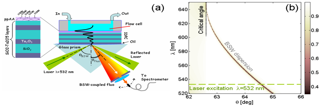 - Toma, K.; Descrovi, E.; Toma, M.; Ballarini, M.; Mandracci, P.; Giorgis, F.; Mateescu, A.; Jonas, U.; Knoll, W.; Dostálek, J. Bloch surface wave-enhanced fluorescence biosensor. Biosens. Bioelectron. 2012. [Google Scholar] [CrossRef]