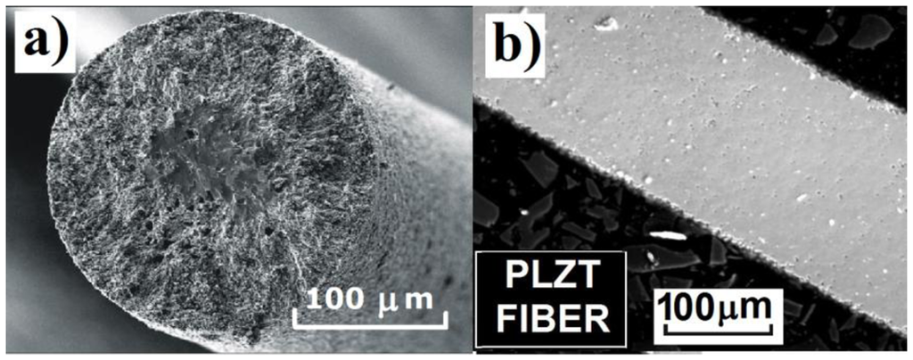 - Dittmer, R.; Clemens, F.; Schönecker, A.; Scheithauer, U.; Rojas-Ismanel, M.; Graule, T. Microstructural analysis and mechanical properties of Pb(Zr,Ti)O3 fibers derived by different processing routes. J. Am. Ceram. Soc. 2010, 93, 2403–2410. [Google Scholar]