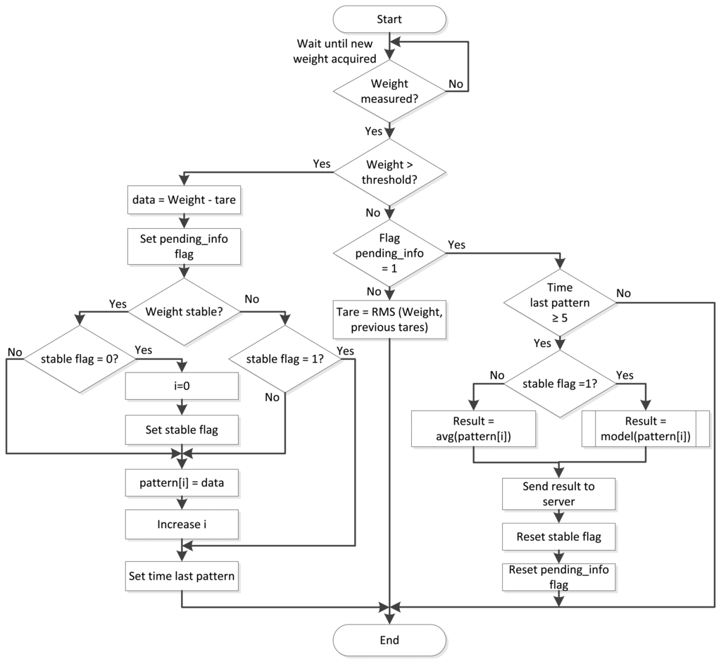 This algorithm would be implemented over devices with low resources, such as the microcontroller used for controlling the smart nest boxes. The next section describes the main tasks undertaken for development by the proposed weight acquisition system.