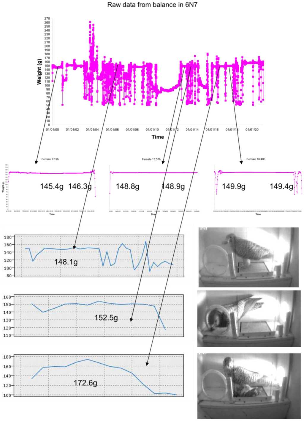 We obtained individual body mass by placing the scale in an area where the animal had to pass through. This passage area must be chosen in relation to the species' habits. For species breeding in nest boxes, the entry of the nest box is a good place—the animal often enters several times a day and, during the breeding season, it allows us to estimate the number of foraging bouts parents make to feed the offspring. All these data are valuable for zoologists, and allows them to obtain large amounts of data within a short time.
