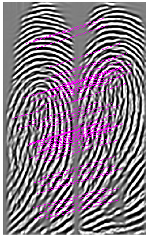 - Park, U.; Pankanti, S.; Jain, A.K. Fingerprint Verification Using SIFT Features. Proceeding of SPIE Defense and Security Symposium, Orlando, FL, USA, 16 March 2008. paper 6944–19.