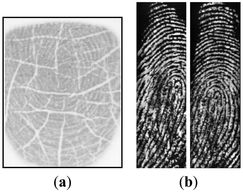 - Choi, H; Choi, K.; Kim, J. Fingerprint matching incorporating ridge features with minutiae. IEEE Trans. Inf. Forensics Secur. 2011, 6, 338–345. [Google Scholar]