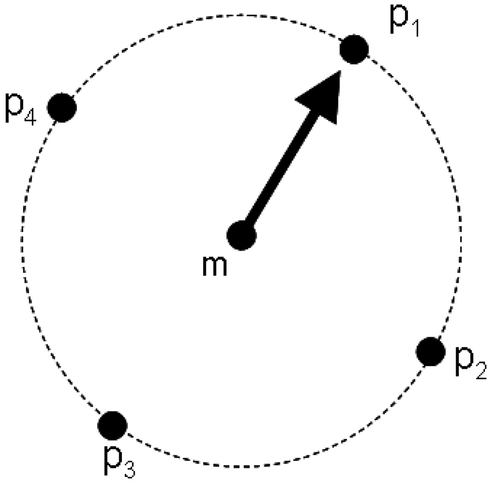 Let m and pi denote the detected minutia and the sampling point. The descriptor of detected minutia is defined as: