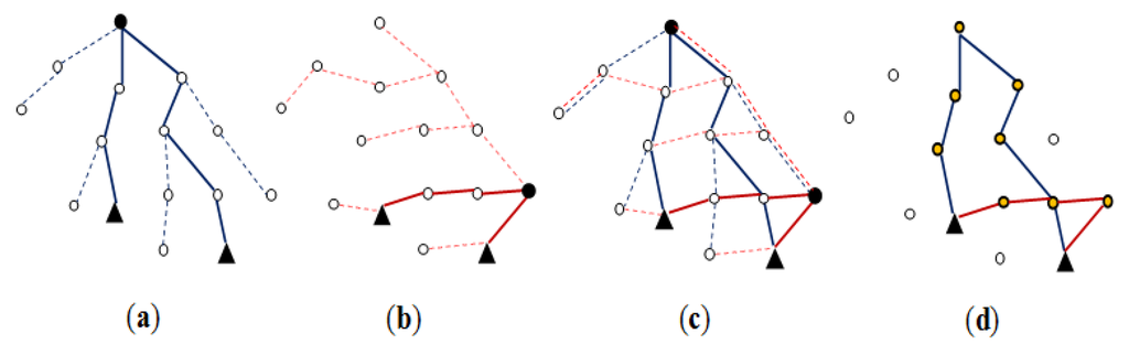 - Karp, B.; Kung, H. GPSR: Greedy Perimeter Stateless Routing for Wireless Networks. Proceedings of 6th Annual International Conference on Mobile Computing and Networking, Boston, MA, USA, 6–11 August 2000; pp. 243–254.