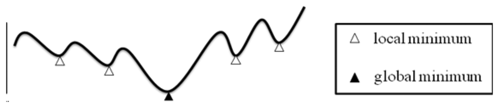 Figure 6 illustrates a generic non-linear programming problem which we want to solve. The curve of the solutions is involved many local minimum and only one global minimum. The objective would be the global minimum. In order to solve this kind of optimization problem, Lagrangean Relaxation (LR) method is a good way to calculate or get the solutions by approximation to the global optimality.
